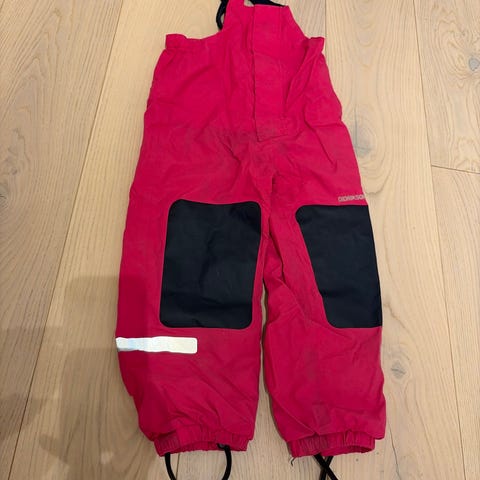 Jeg gir bort en vinterbukse fra Didrikson i str. 130. Den har to små hull ved knærne (se bildene), men mulig noen har lyst å overta den som en ekstra vinterbukse. Må hentes på Bekkestua.