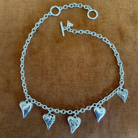 Flott kjede selges. Kan ta vekk eller hekte på flere anheng. Hel lengde inkludert fester er 47 cm.