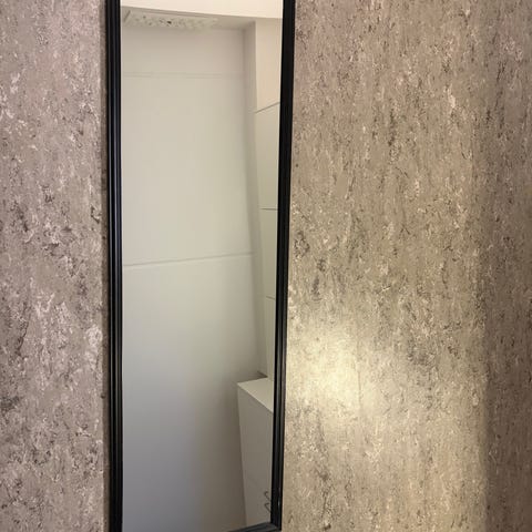 Pent brukt speil fra Møbelringen. Fargen er brunbeiset tre, det er ikke så mørkt som på bildet.