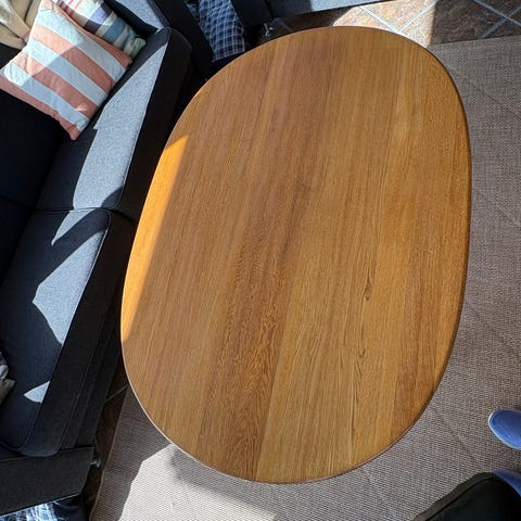 Strøkent heltre salongbord i eik