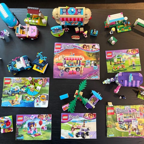 5 stk små Lego Friends. Komplette, men esker mangler. Består av disse numrene: 41002, 41114, 3930, 41386 og 41304.
