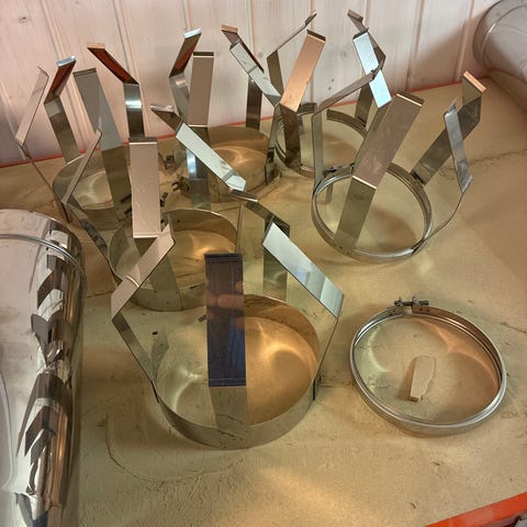 Pipeelement i betong med målene 44 cm x 44 cm og en sirkulær åpning på 20 cm. Elementet har fire hull i hjørnene for montering. Egnet for bruk i pipe- eller ventilasjonskonstruksjoner.