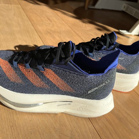 Selger et par helt nye Adidas adizero prime SP2 i størrelse 43 1/3! Dette er sprint skoen til Adidas og OL fargen for 2024!