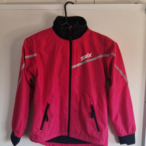 Swix langrennsjakke for junior, str 164 - i mørk rosa og svart farge. Jakken har glidelås foran, elastiske mansjetter og refleksdetaljer. Ytterstoffet er vindtett, og innsiden har et mykt, pustende materiale. Egnet for langrenn og andre utendørsaktiviteter.