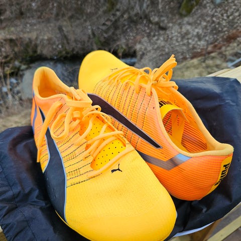 Selger et par pent brukte puma sprint sko i størrelse 43! Disse er pent brukt, ingen synlige merker over skoen, kun under platen der jeg har brukt de på bane (ikke mye)