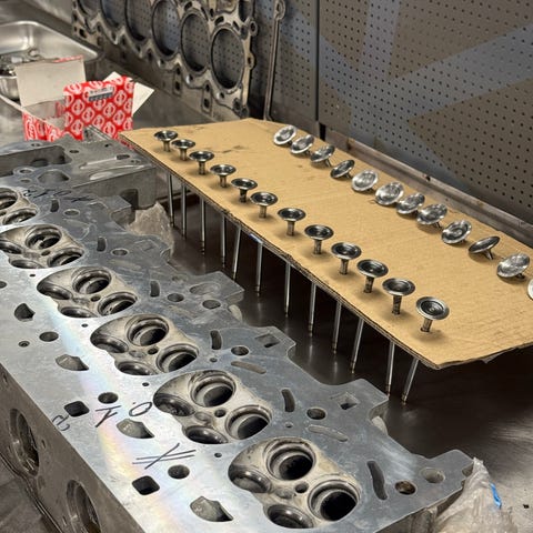 Dette er ein tennplugg- og støtstangorganisator for en V8-motor. Alle sylindere og retninger er merket for å gi en rask oversikt over tilstanden til pluggene eller plasseringen av støtstengene under demontering og feilsøking.