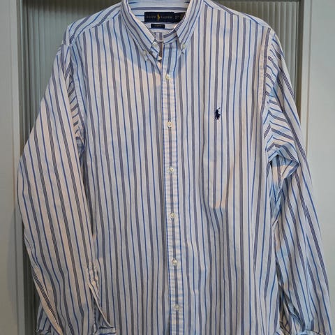 Selger en hvit Ralph Lauren pikeskjorte for herrer laget av pima cotton stoff. Skjorten ble kjøpt hos nettsiden Care of Carl for 1699kr. Den er lite og pent brukt. Selges fordi den ikke passer meg. Størrelsen er xl, den er slim fit så noe liten i størrelsen, målene til skjorten er på bilde nr 7. send gjerne melding dersom du har spørsmål:)