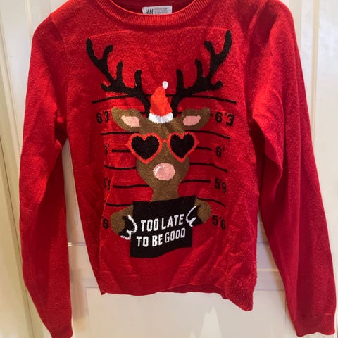 Tynn genser med trykt motiv, str 146/152. Katten sine øyne lyser i mørket.