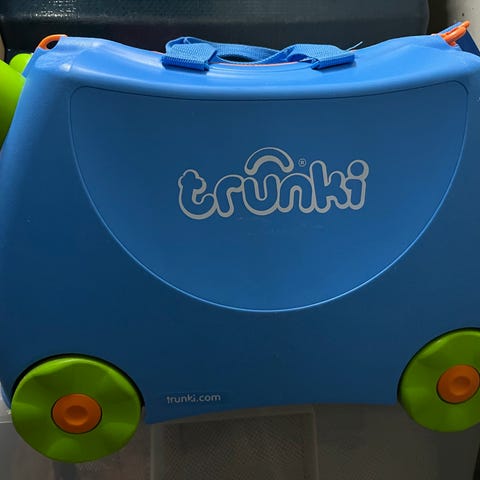 Super praktisk trillekoffert til barn - som de også kan sitte på når beina blir trøtte! Brukt av ett barn, men mye bruk igjen. Røyk- og dyrefritt hjem.
