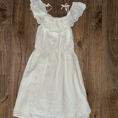 Hvit florlett kjole, str. 170 / ca 14+ år. Aldri brukt.