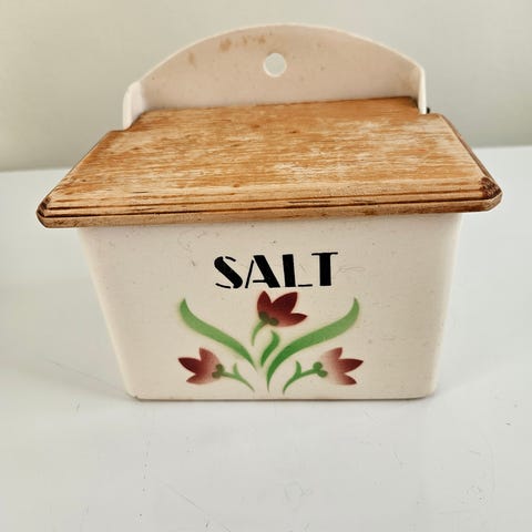 Fint vintage saltkalt fra Egersund, med teaklokk.