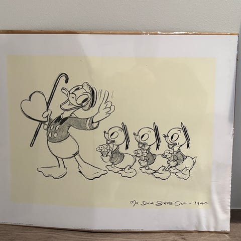 Donald Duck Jadoor art Work, Walt Disney. Rammemål 33 x 39 cm. Bildemål ca. 21 x 16 cm.