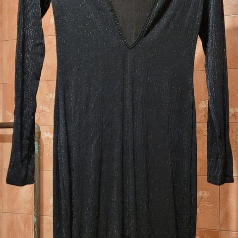 Cubus festkjole i svart farge, størrelse S. Kjolen har en glitrende overflate og er designet for kvinner. Egnet til formelle anledninger. Tynt stoff og 3/4 armer