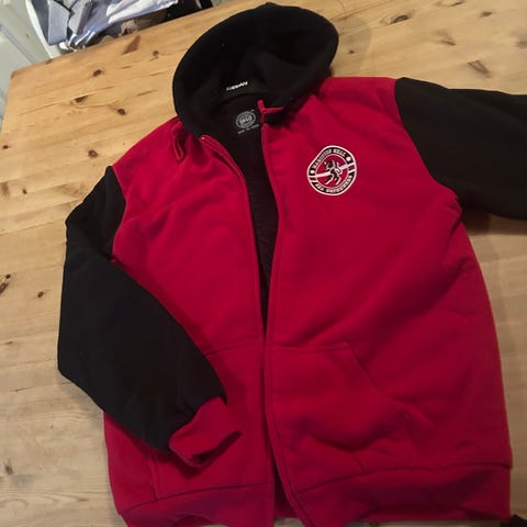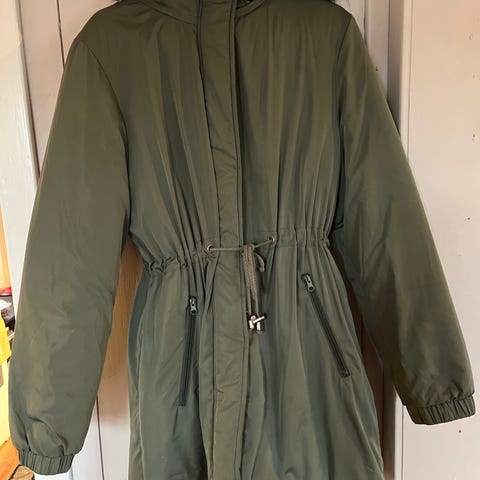 Ytterjakke med glidelås- og trykknapplukkiing.