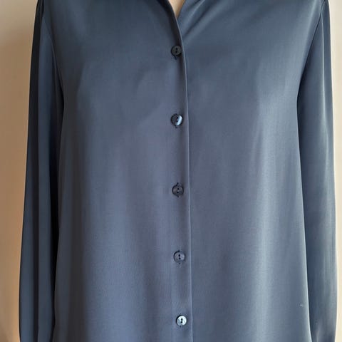 Selger en blå silkeaktig Part Two Tika skjorte i blå farge, størrelse 36. Passer både størrelse 36 og 38. Laget av lett materiale med knappelukking foran og klassisk krage. Faller fint ned langs kroppen. Langermet design med mansjetter. Passer til ulike anledninger som jobb og fest 🥳