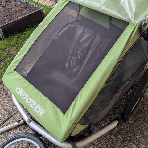 Croozer Kid 2 sykkelvogn med plass til to barn. Vognen har grønn og grå farge, med sikkerhetssele og transparent vindu foran. Egnet for sykling med barn og har solid ramme for trygg transport. Godt brukt men alt fungerer som den skal . Har i tilegg en foran hjul slik at den kan brukes som vogn uten sykkel og hvis man har behov kan kjøpes en babysete i tillegg som passer fra 6 til 10 mnd .