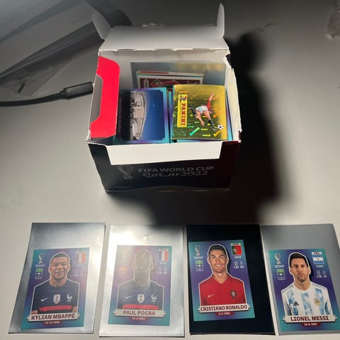 Panini UEFA Euro 2020 samlekortsett inkludert et fargerikt album for oppbevaring og organisering av kortene. Settet inneholder ulike fotballkort fra mesterskapet, egnet for samlere og fotballentusiaster.