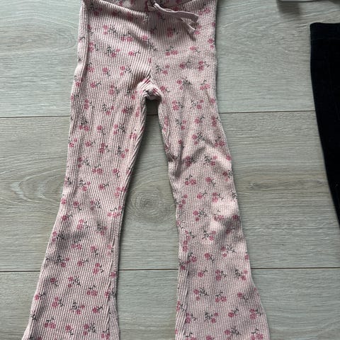 Svært pent brukt - ingen tegn til slitasje. Myke, stretchy bukser med strikk i livet (med knappe-justering). Nydelig ensfarget mørkerosa. Tettsittende ben med ekstra vidde nederst / utsvingte bein.