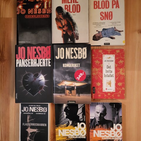 Bøker selges for 50kr pr stk.