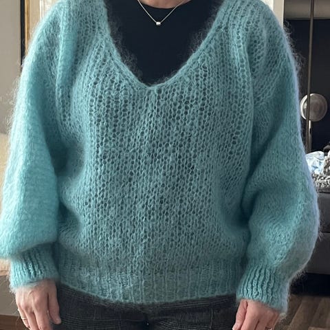 Veldig deilig garn, tror det er mohair, lett og behagelig å ha på.