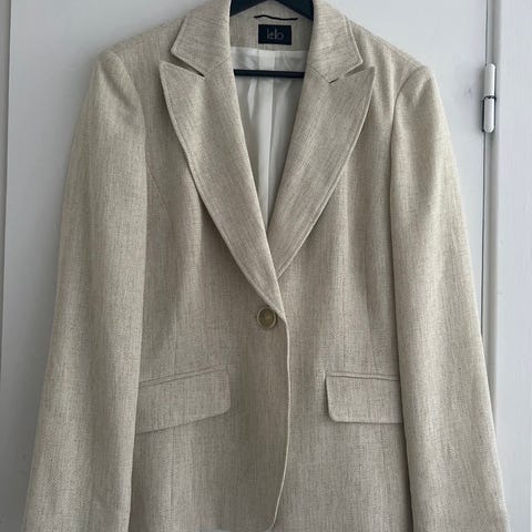 Flott jakke/blazer fra Vero Moda -80 tallet. Farge grå. Lengde 88 cm. Det er 2 pyntelommer i front, og 4 knapper, silkeforet innside. Lite brukt, få små spor etter bruk. Selges kr. 120 + frakt med posten.