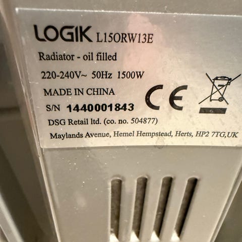 BEHA Oljefyllt Radiator med modell Type OHS 1500. Effekt på 1500 watt, spenning 230-240V, 50Hz. Farge grå. Radiatoren har flere varmeelementer og justerbare termostater for temperaturkontroll. Designet for å gi varme i rom.