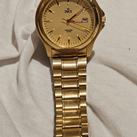 Dette er et INEX Titanium Sapphire-armbåndsur, tilgjengelig for 1 799 kr. Må ha nytt batteri.
