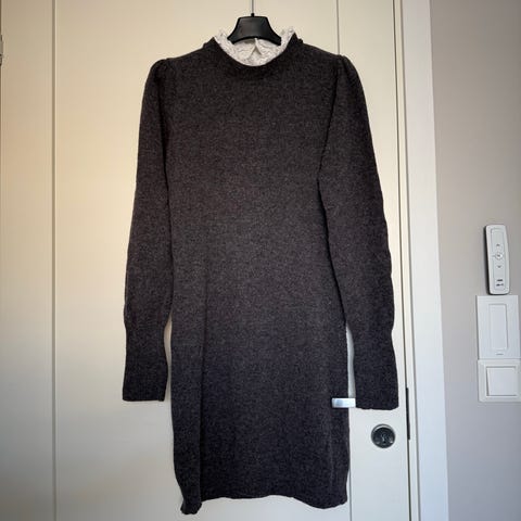 Grå kjole med litt puffermer str M selges kr 140,-Brukt noen få ganger. Lengde: 95 cm fra skulderen.