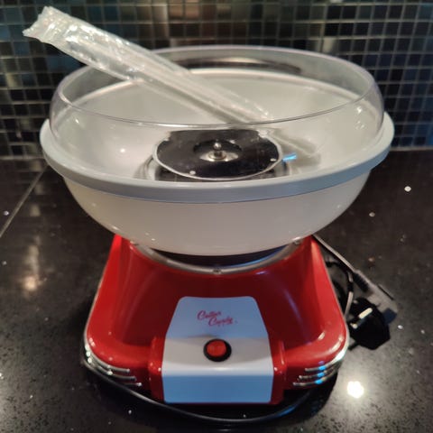 Fungerende sukkerspinnmaskin som har gitt mye glede både i bursdager og helger.