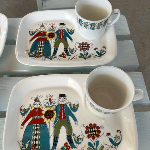 3 kopper med asjett og 2 skåler fra Figgjo Fajanse - Nordfjord.