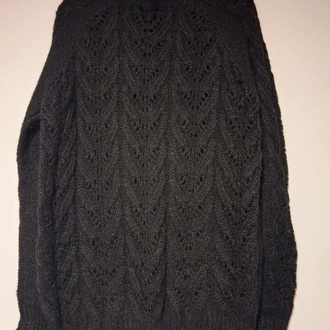 Nydelig Cardigan jakke i en flaskegrønn farge. Størrelse 2 = M/L damestr. Har sjalskrage, to lommer foran, fint snitt da den er litt innsvinget, fin lengde og fint strikkemønster. Innholdet er: 50% Acryl 25 % lana wool og 25 % alpakka. Lett og nett jakke, super bruksjakke.