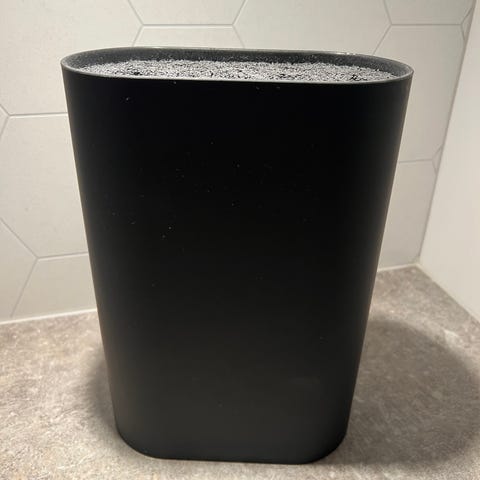 Praktisk og romslig redskapsholder i tre ulike høyder. En av boksene er til kniver, mens de to andre er kjekke til stort og smått. Smart løsning til skjærefjøl på baksiden.