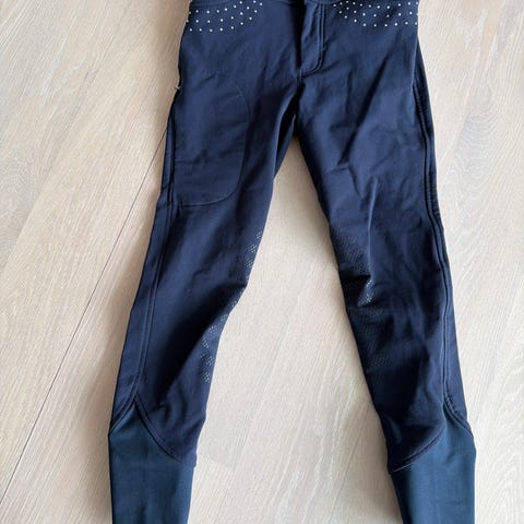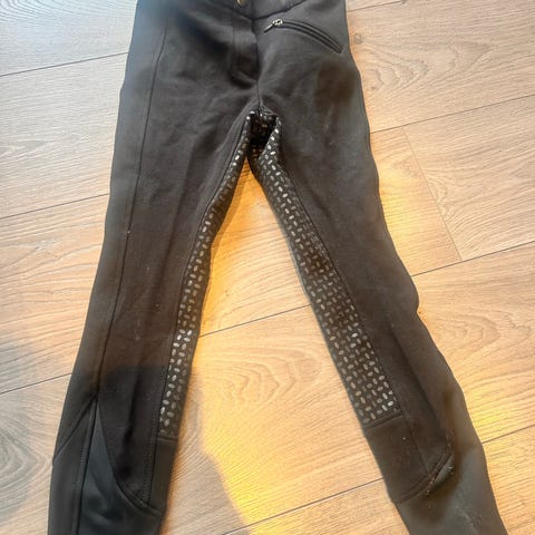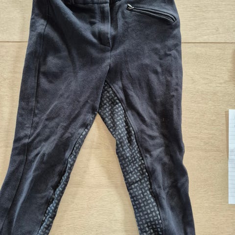 CRW Ridebukse i størrelse 150 cm, svart farge. Laget av elastisk materiale med silikonprint på innsiden av bena for bedre grep. Designet for ridning med fokus på funksjonalitet og komfort.