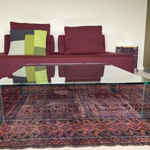 Bordet har en rektangulær form og en klar glassplate. Passer til bruk som salongbord eller sidebord i hjem eller kontor.