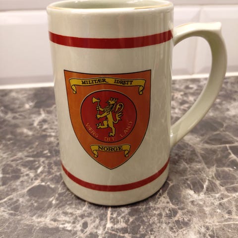 Flott krus med NM i Feltidrett 1983. Agder HV distrikt 07. Diameter 7,5cm og høyde 12,5cm. Pent brukt.