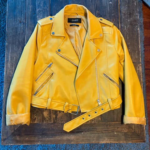 Pull&Bear jakke i fake skinn. Jakken har et ytre laget av imitert skinn og en innerfor av lyst, mykt teddy-materiale. Designet med en krage i teddy-stoff og en kort, boxy passform.