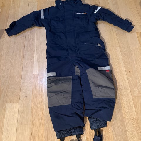 Pent brukt marineblå vinterdress fra Didriksons. Dressen er i str 90, men mangler hette. Ellers er alt som det skal, ingen skader. Solid og robust dress.