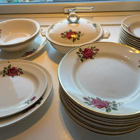Pent gammelt middags service selges .