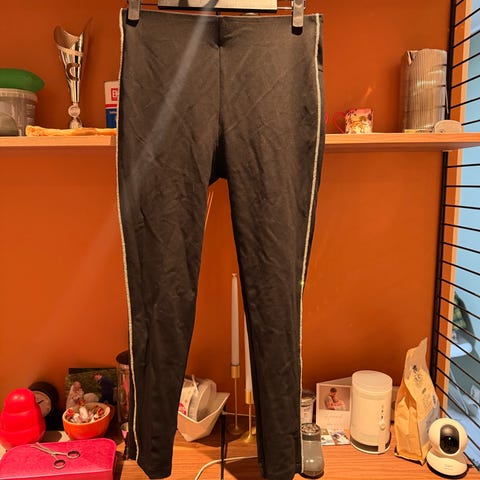 Ny sort Zara Tights i størrelse L med god benlengde. Tettsittende bukse med god benlengde, stretch i stoffet, strikk i livet og glidelås foran på ankelen for evt splitt. Godt stoff som holder fasongen.