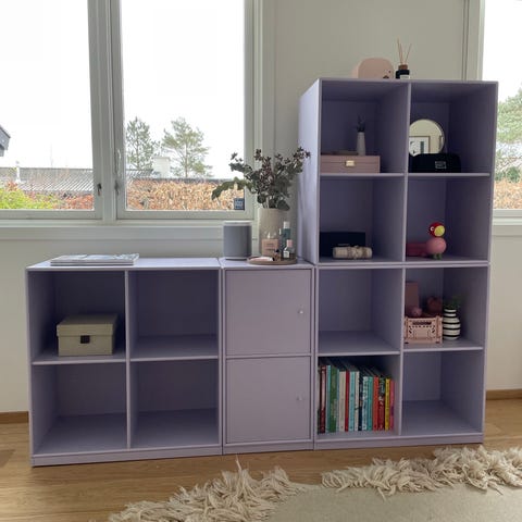 Selger to doble Montana skap i lys grå utførelse.