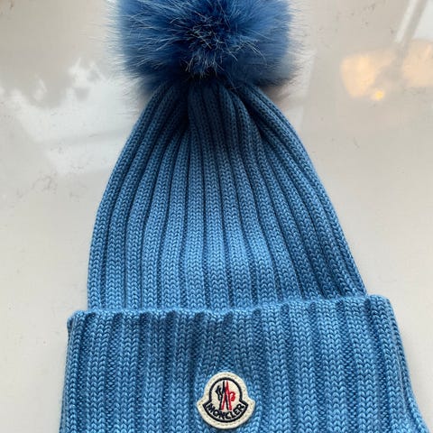 Nydelig lue fra Moncler. Kjøpt i Moncler-butikken i New York. Dustbag medfølger. Brukt et par ganger og fremstår ny.