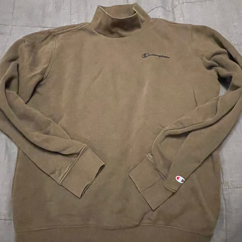 Champion langermet genser i størrelse S for menn. Genseren har blå ermer og hvit kropp, laget i komfortabelt materiale. Passer til hverdagsbruk og lag-på-lag ved kjøligere vær.