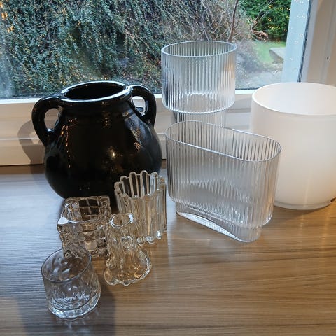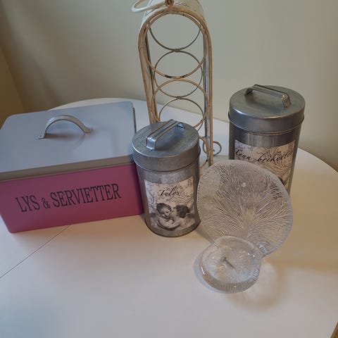 Vaser, lyslykt, interiør, klokke, kurv, putetrekk, duk, løper, lysfat, kaffeboks, ramme, bilderamme, pyntegjenstander, telysholder, serviett holder