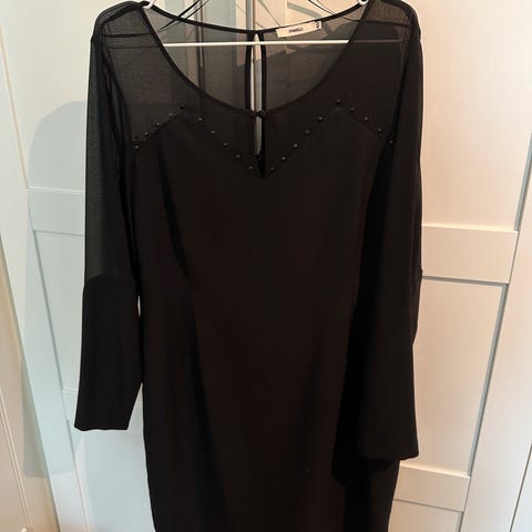 Lett strykefri kjole som kan snøres inn etter behov, eller belte kan knyttes bak. Litt stor i størrelsen pga kan justeres og er behagelig på.