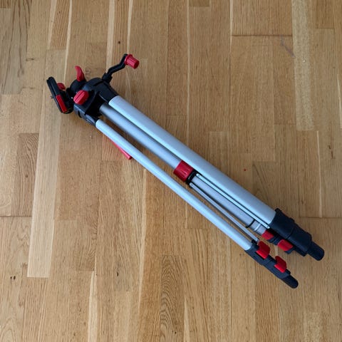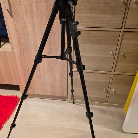 Nesten ubrukt stativ. 530g. Justerbar både i ben og kamerafeste. Med vater.
