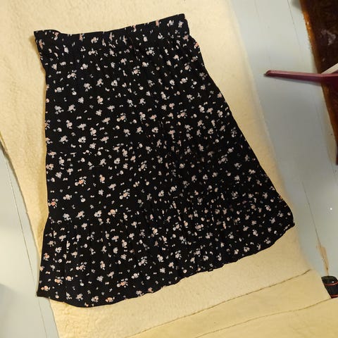 H&M flerfarget skjørt for kvinner i størrelse 46. Skjørtet har et blomstermønster og er laget av et lett materiale. Egnet for daglig bruk og ulike anledninger.