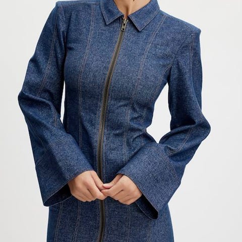 Vlora Blazer er en tidløs, tøff dressjakke i myk bomullskvalitet med denimlook. Den har to lommer med klaff foran og lukkes med en knapp. Jakken har markerte sømmer. Laget av 98% bomull og 2% elastan, gir den både komfort og fleksibilitet.