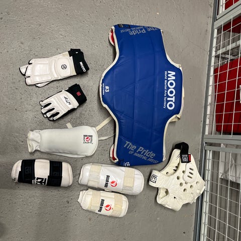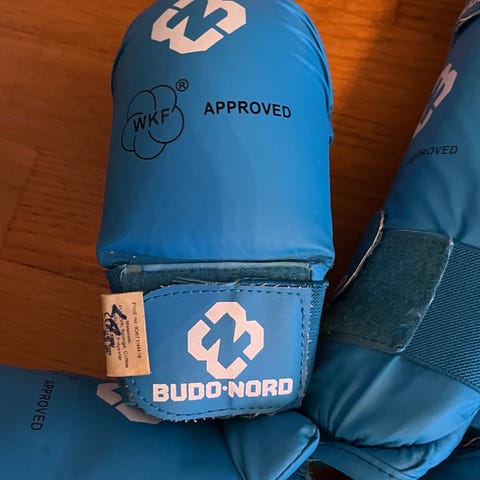Budo-Nord kampsportbeskyttelse sett som inkluderer brystplate, susp,hansker, leggskinner ,fotbeskyttelse og bag.i størrelse S. Materialet er slitesterkt og egnet for kampsporttrening og konkurranse.