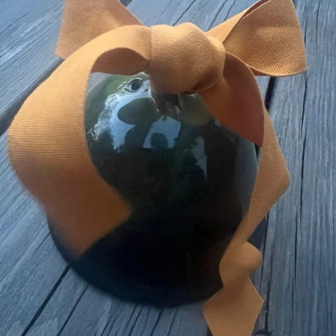 Den er merket med Krowi «håndlaget i Italia». Veldig søt som julepynt eller en liten julegave.