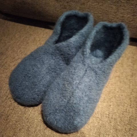 Lende: 56 cm. Fot: 29 cm Hjemmestrikket